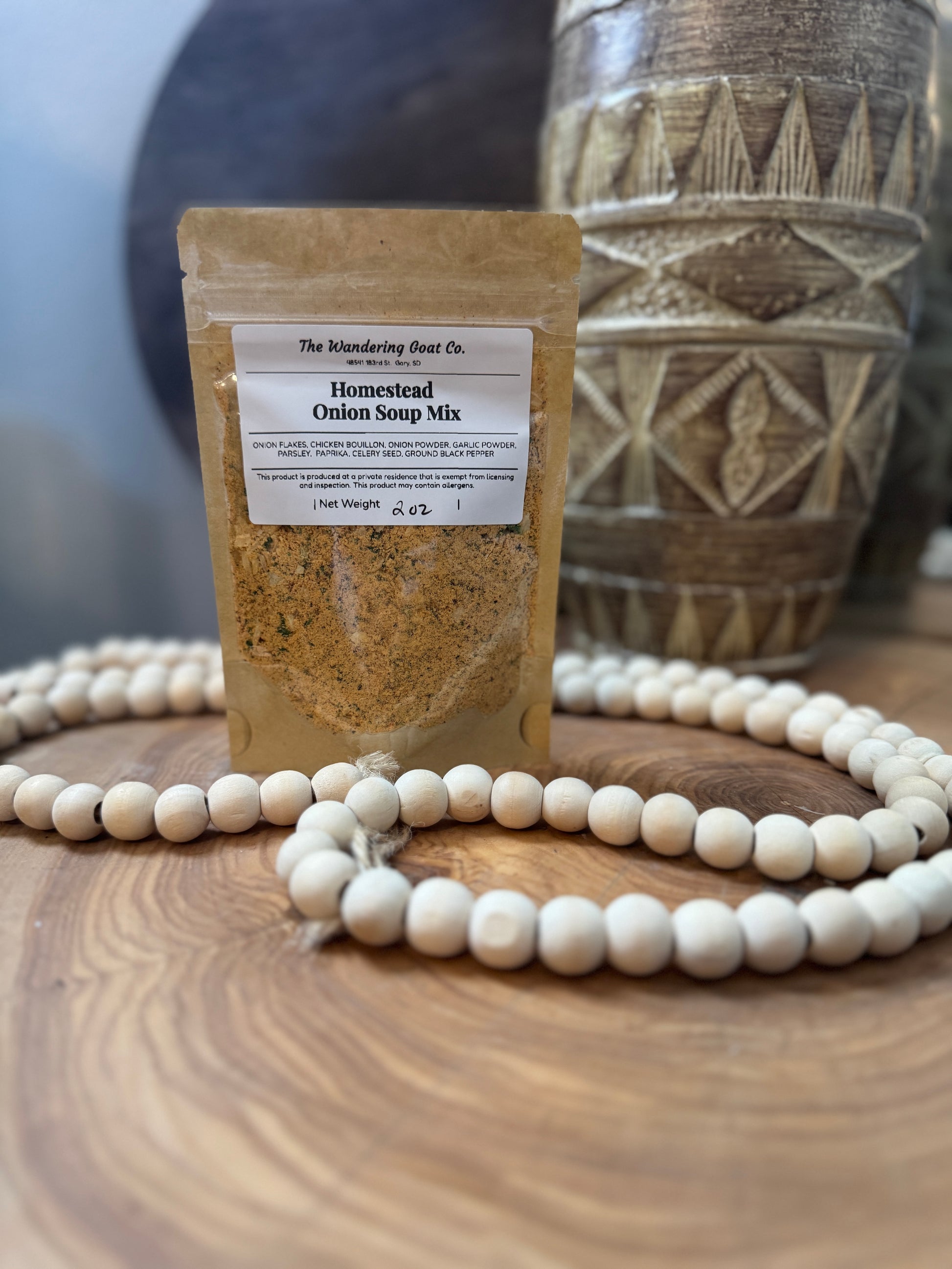 Hearty, savory, and packed with rich onion flavor- this homestead-style onion soup mix is more than just a soup started. Use it in dips, roasts, stews, or casseroles for a deep, comforting flavor that tastes like something simmered on grandma's stove.